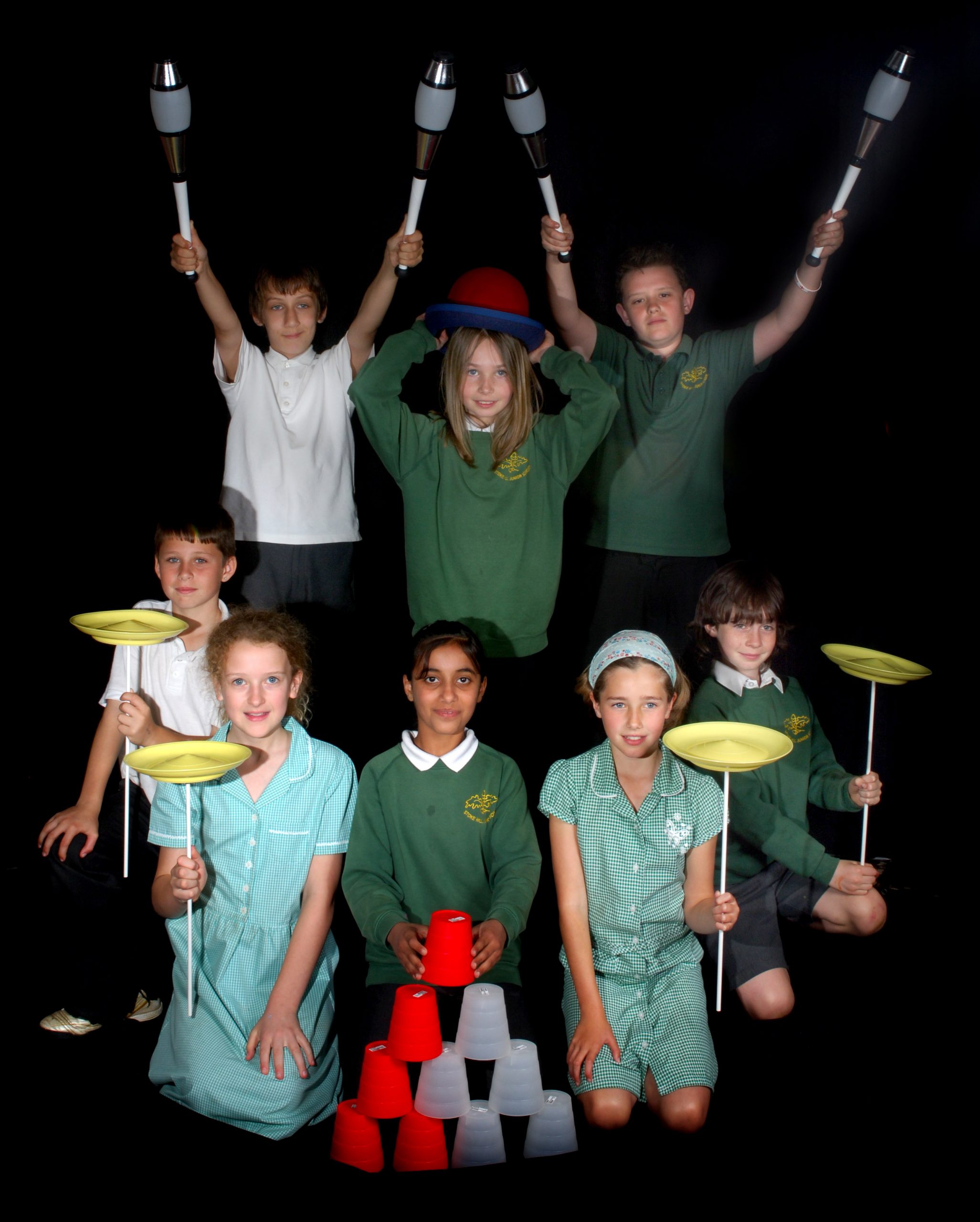 KS1 can learn to balance a Peacock feather in various positions, spin a plate and do tricks, juggle three balls between two, try flower sticks and possibly Year 2 could do a tumbling routine.