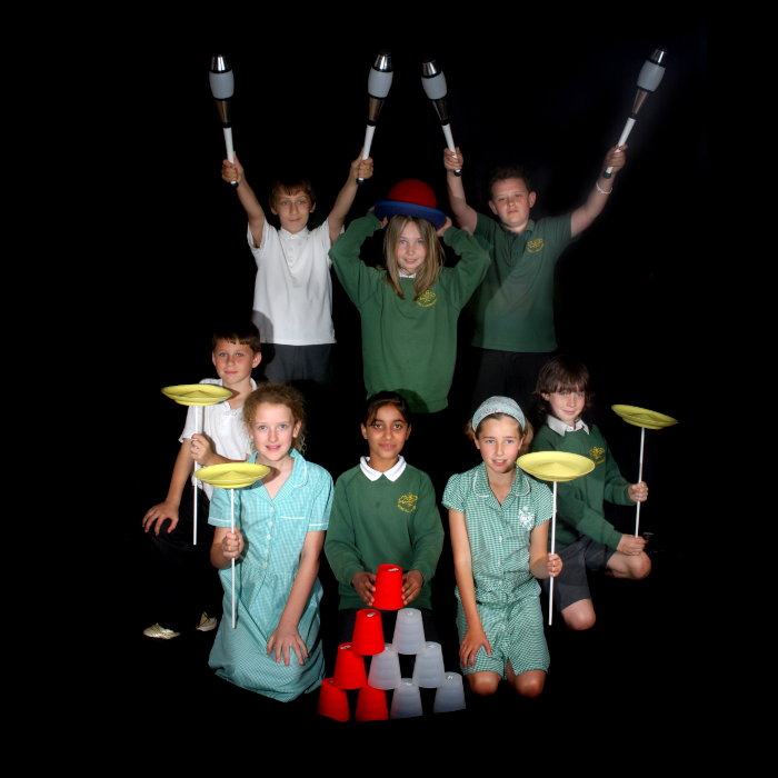 Each Year 6 pupil can perform a maximum of 4 routines which will include some of the following Circus Skills: – Balancing a Peacock Feather on various parts of the body, advanced Plate-Spinning tricks and routines, Diablo, Swinging Poi, Hula-Hooping, A Tumbling Routine, Gymnastic Ribbon, Flower Sticks, Juggling Balls and/or Juggling Scarves. Try Unicycling, Hand-Held Stilts and Pogo-Stick. The workshop sessions can be run indoors or outdoors.
